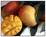 This is a sweet, firm-fleshed mango with a dark red blush. It’s in season from January to March.